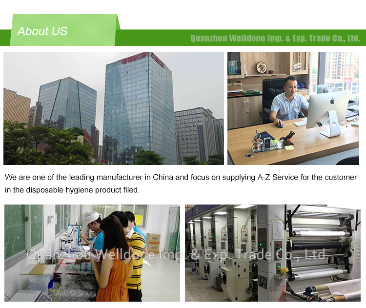 WELLDONE es una de las empresas líderes, que se centra en el suministro de Servicio A-Z para el cliente en el campo de productos de higiene desechables, ubicada en la ciudad de Jinjiang, provincia de Fujian, China.