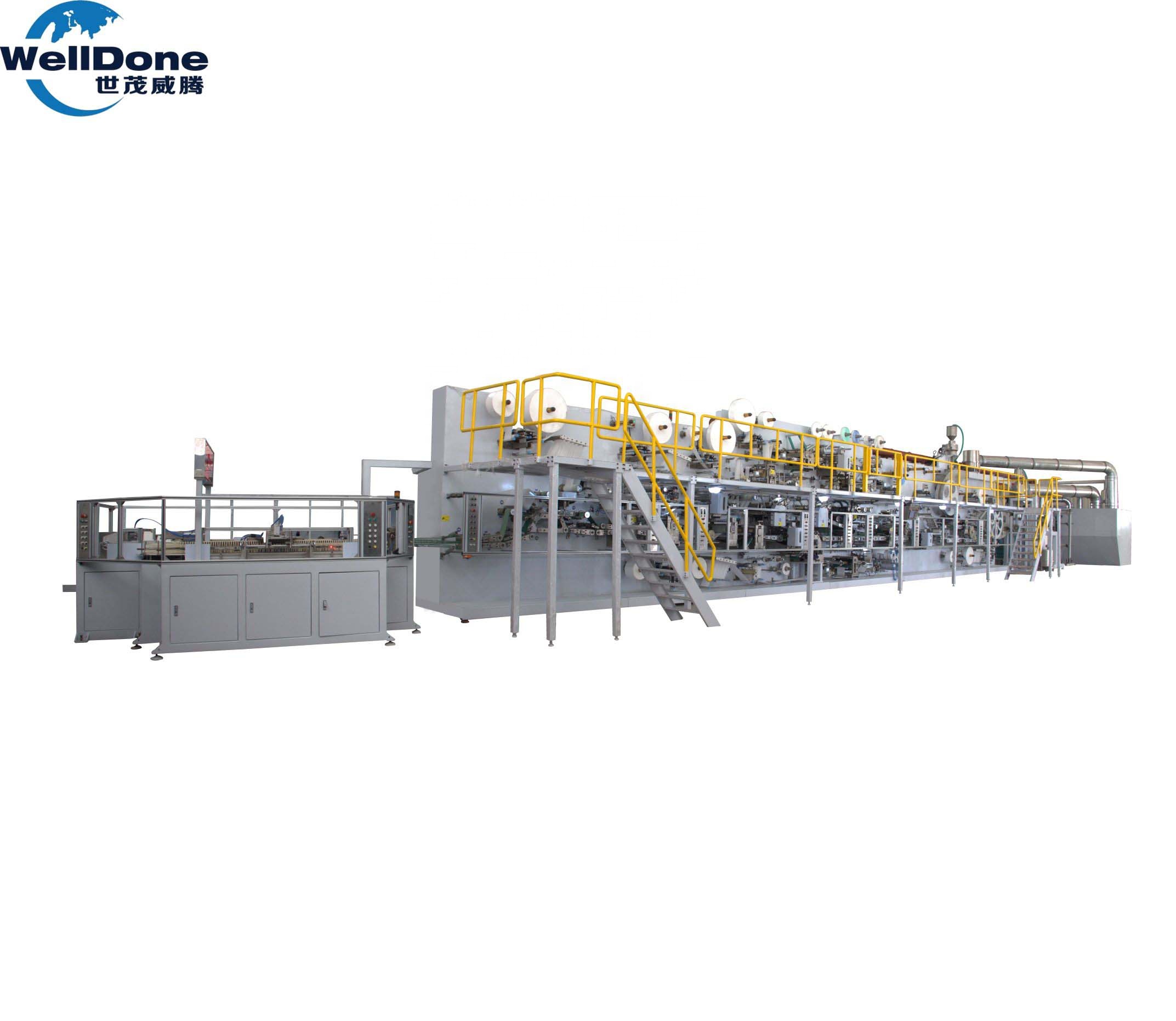 Línea de producción automática de pañales para bebés WellDone Maquinaria rentable para hacer pañales de papel