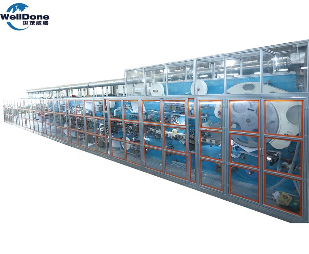 Línea de producción automática de pañales para bebés WellDone Maquinaria rentable para hacer pañales de papel
